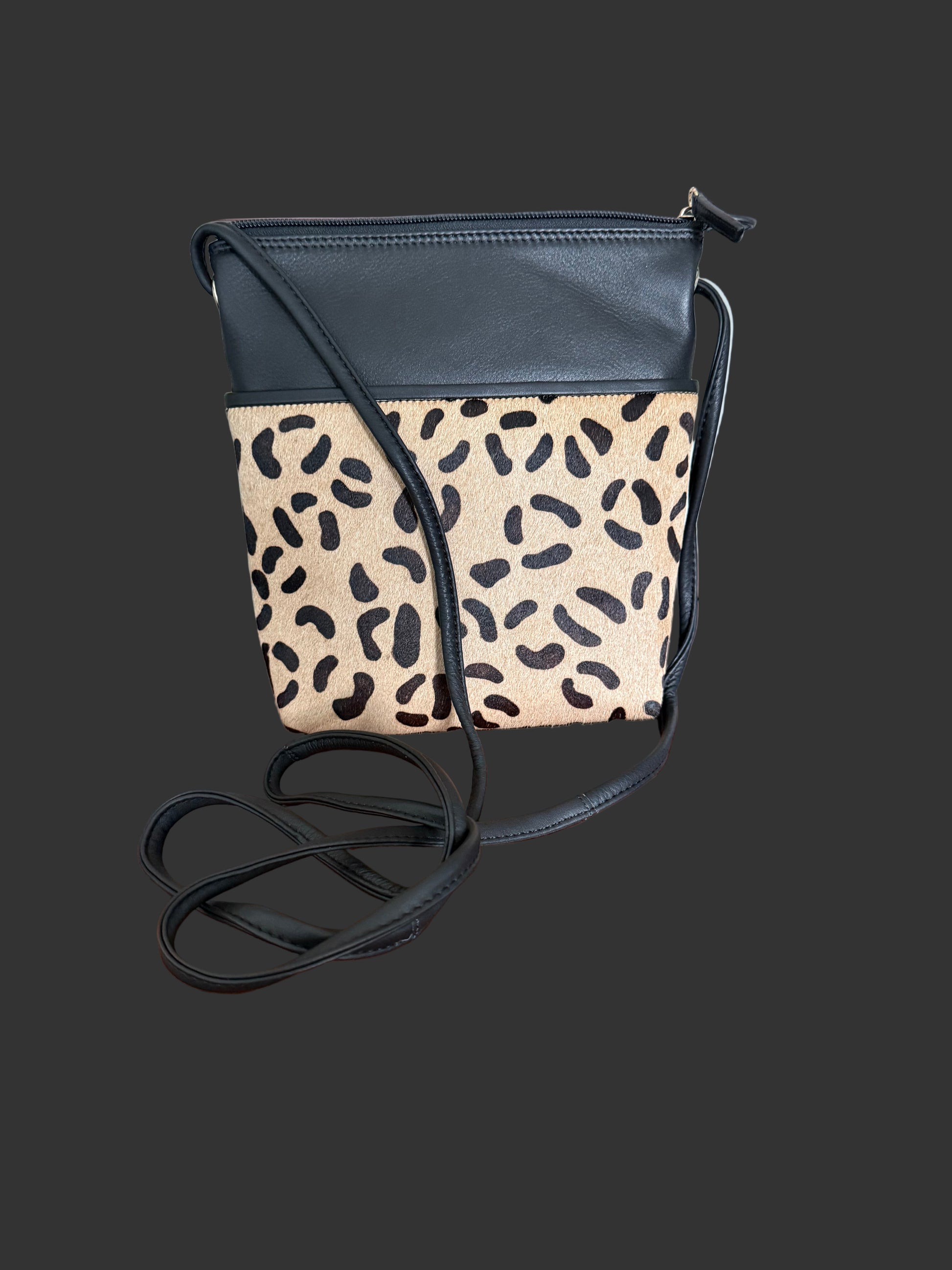 Embrace the Wild Side with this stylish crossbody bag featuring trendy animal prints. Measuring a practical 9 x 8 x 2 inches, this leather purse offers a perfect balance between compactness and functionality for everyday use. It showcases a unique deep calf hair pocket on the front embossed with a wild animal pattern, enhancing its tactile and luxurious appeal. Designed to sit flush against the body, it provides added security for busy, on-the-move lifestyles. A spacious zippered compartment at the back allows for easy access, while the fully fabric-lined interior includes a zipped pocket to keep essentials organized. The adjustable strap guarantees a personalized and comfortable fit, available in timeless black. For strap adjustment details, please visit our website. This bag is both practical and refined.